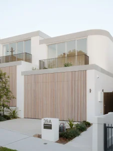 Street view showing the architectural symmetry of the dual residences 04